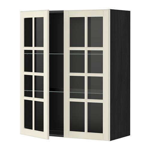 METOD навесной шкаф с полками/2 стекл дв черный/Будбин белый с оттенком 80x100 см