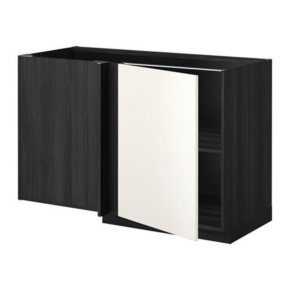 METOD угловой напольный шкаф с полкой черный/Веддинге белый 128x68 см