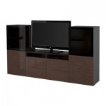 БЕСТО Шкаф для ТВ, комбин/стеклян дверцы - черно-коричневый/Сельсвикен глянцевый/черный прозрачное стекло, направляющие ящика, плавно закр 0.0/5 оценка (0 голосов)