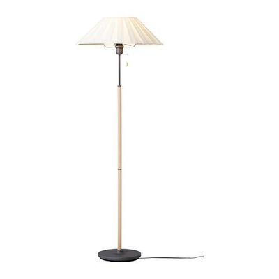 -Абажур из ткани; создает рассеянное и декоративное освещение.
