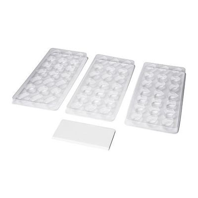 В набор входит: 3 формочки для шоколадных конфет (длина 24 см, ширина 11 см) и лопаточка (длина 12 см, ширина 6 см).