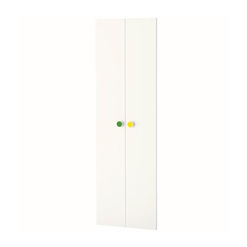 В набор входит: 2 дверцы, 2 ручки и 1 лист с 10 круглыми наклейками (синего, оранжевого, зеленого, желтого и розового цветов – по 2 шт.).