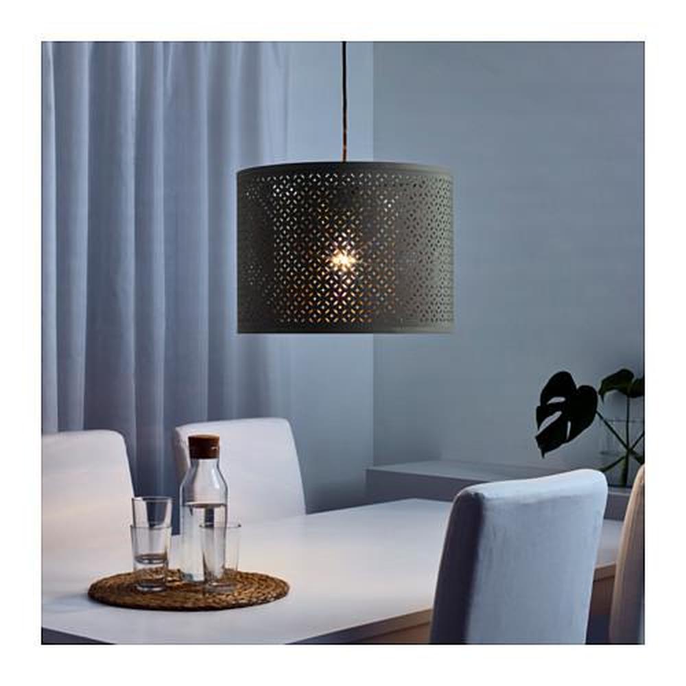 Создает декоративное освещение в комнате; свет проходит через перфорированный абажур.