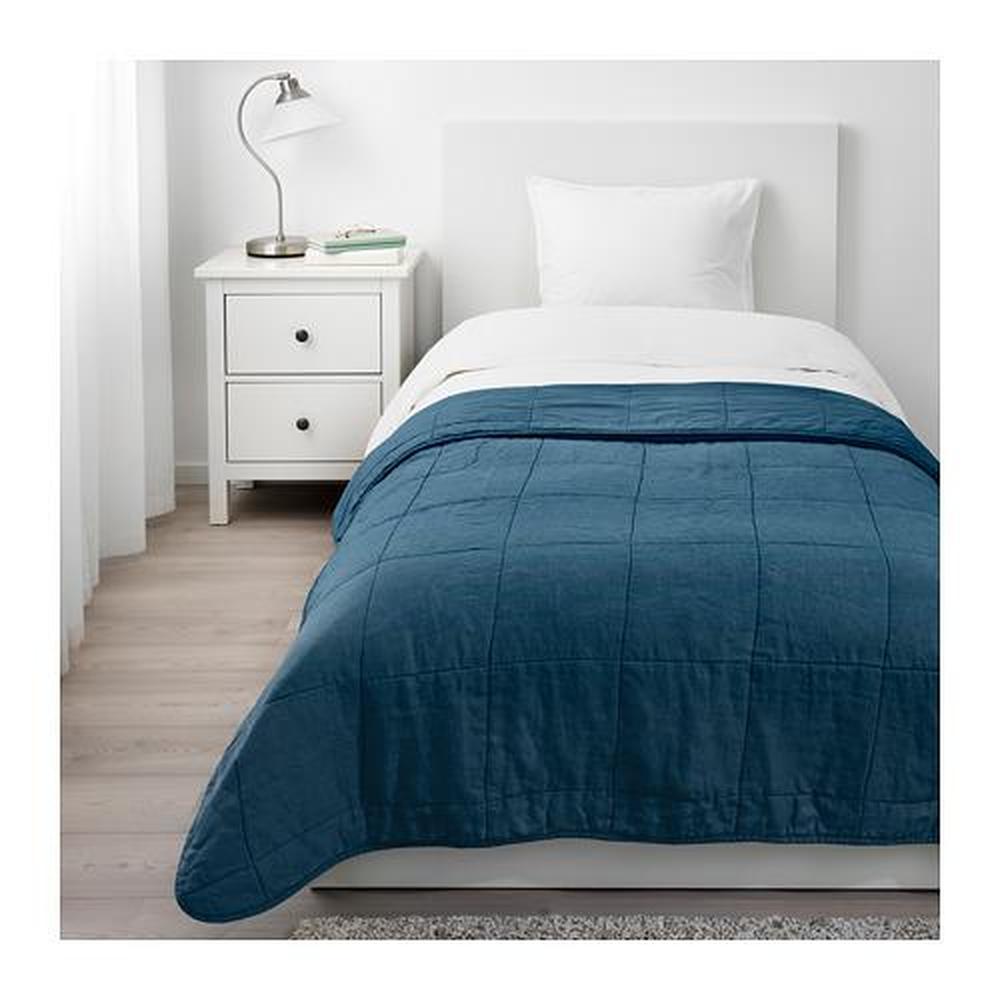 Покрывало из льняной ткани – износостойкого натурального материала с выразительной фактурой.