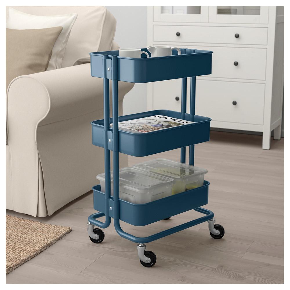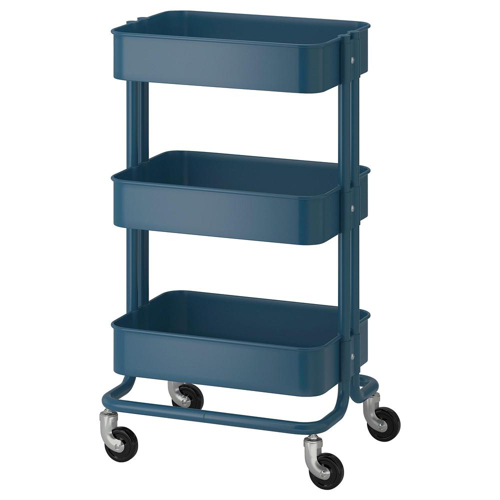 -Благодаря устойчивой конструкции и колесикам легко передвигать. Компактные размеры позволяют использовать тележку даже в ограниченном пространстве.