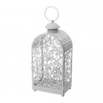 Теплый свет свечи красиво проходит через орнаментальную поверхность фонаря.