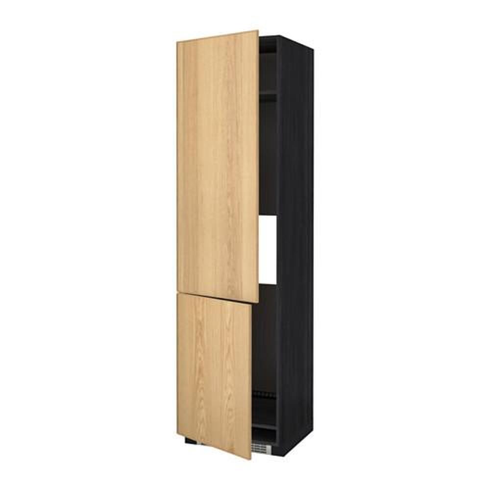 METOD высокий шкаф д/холод/мороз/2дверцы черный/Экестад дуб
