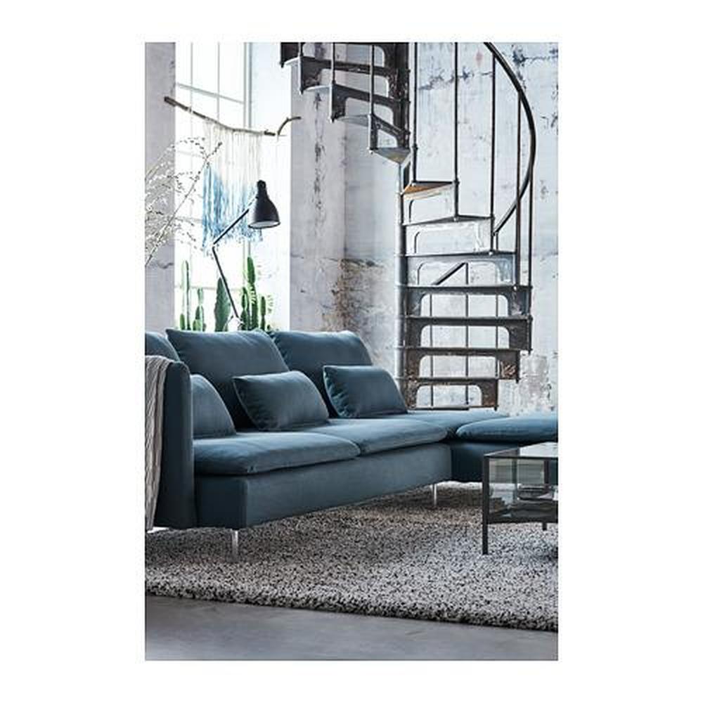 Мягкая мебель серии СОДЕРХЭМН с комфортным низким и глубоким сиденьем и незакрепленными подушками спинки для оптимальной поддержки.