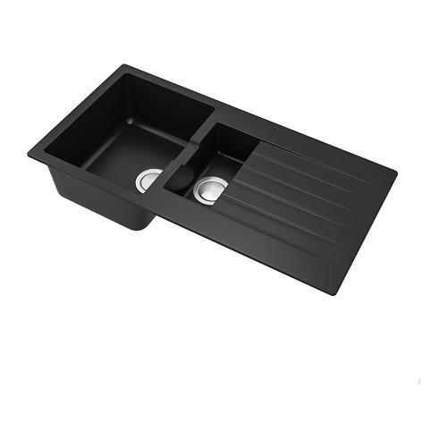 HÄLLVIKEN полуторная врезная мойка с крылом черный/кварцевый композит