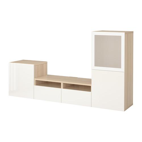 BESTÅ шкаф для ТВ, комбин/стеклян дверцы серый