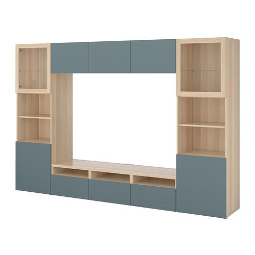 BESTÅ шкаф для ТВ, комбин/стеклян дверцы серый