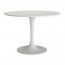 Круглый стол с плавными линиями создает в комнате располагающую атмосферу.
