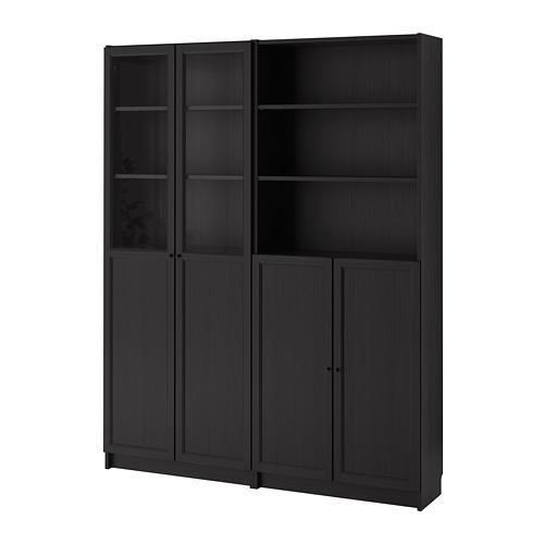 BILLY/OXBERG стеллаж/панельные/стеклянные двери черно-коричневый 160x30x202 cm