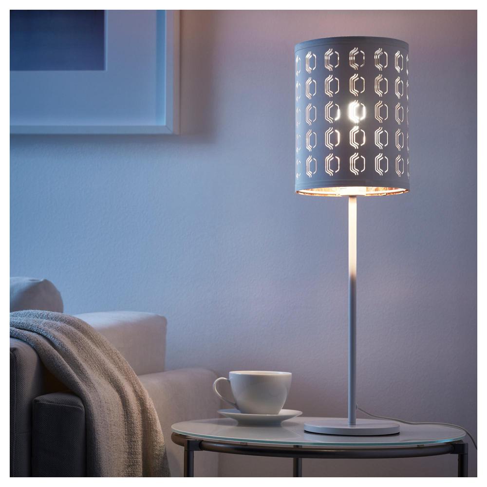 -Создает декоративное освещение в комнате; свет проходит через перфорированный абажур.