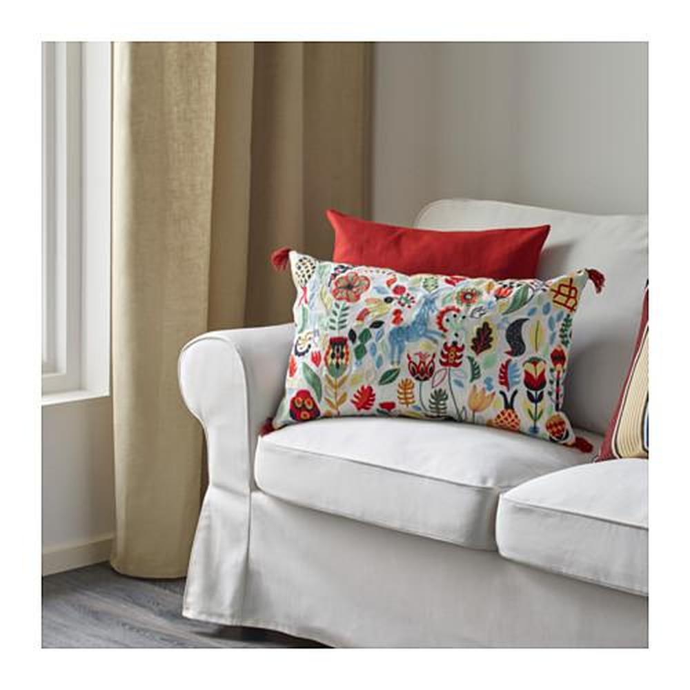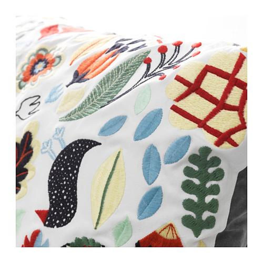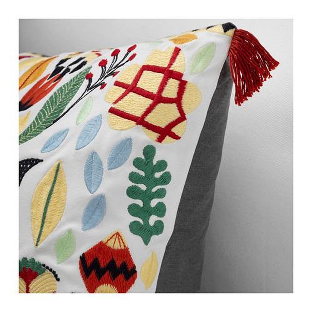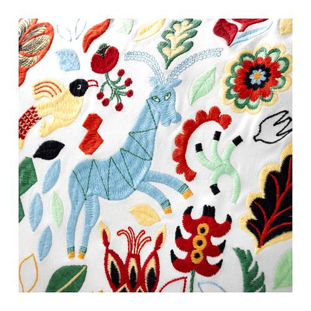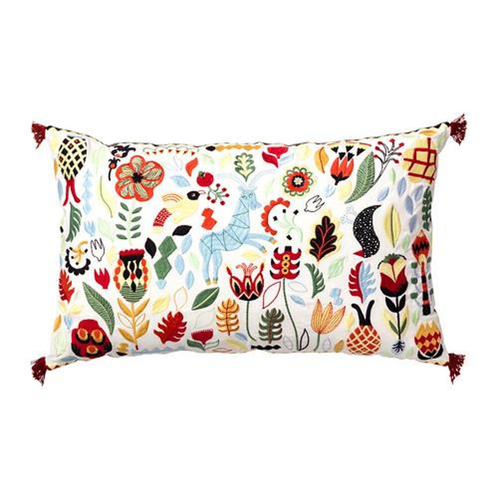 «Делая наброски для текстильных коллекций РЁДАРВ, РОЗЕНФИББЛА и РОЗЕНРИПС, я черпала вдохновение из традиционных шведских узоров для вышивки шерстью. Я представляла, как в былые времена женщины при свечах создавали восхитительные текстильные аксессуары из пряжи, окрашенной растительными красителями. Мое воображение уносило меня в дикие луга, где росли прекрасные цветы, воплощенные в вышивках. Яркий дизайн этих бесценных произведений ручной работы был одним из немногих украшений простого быта. В современном интерьере он будет смотреться не менее эффектно».