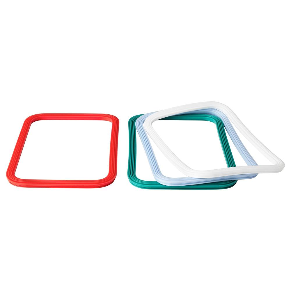 Четыре разноцветные съемные уплотнительные прокладки сделают хранение продуктов в контейнерах более удобным. Выберите цвет для каждого члена семьи или вида продуктов, или даже дня недели.