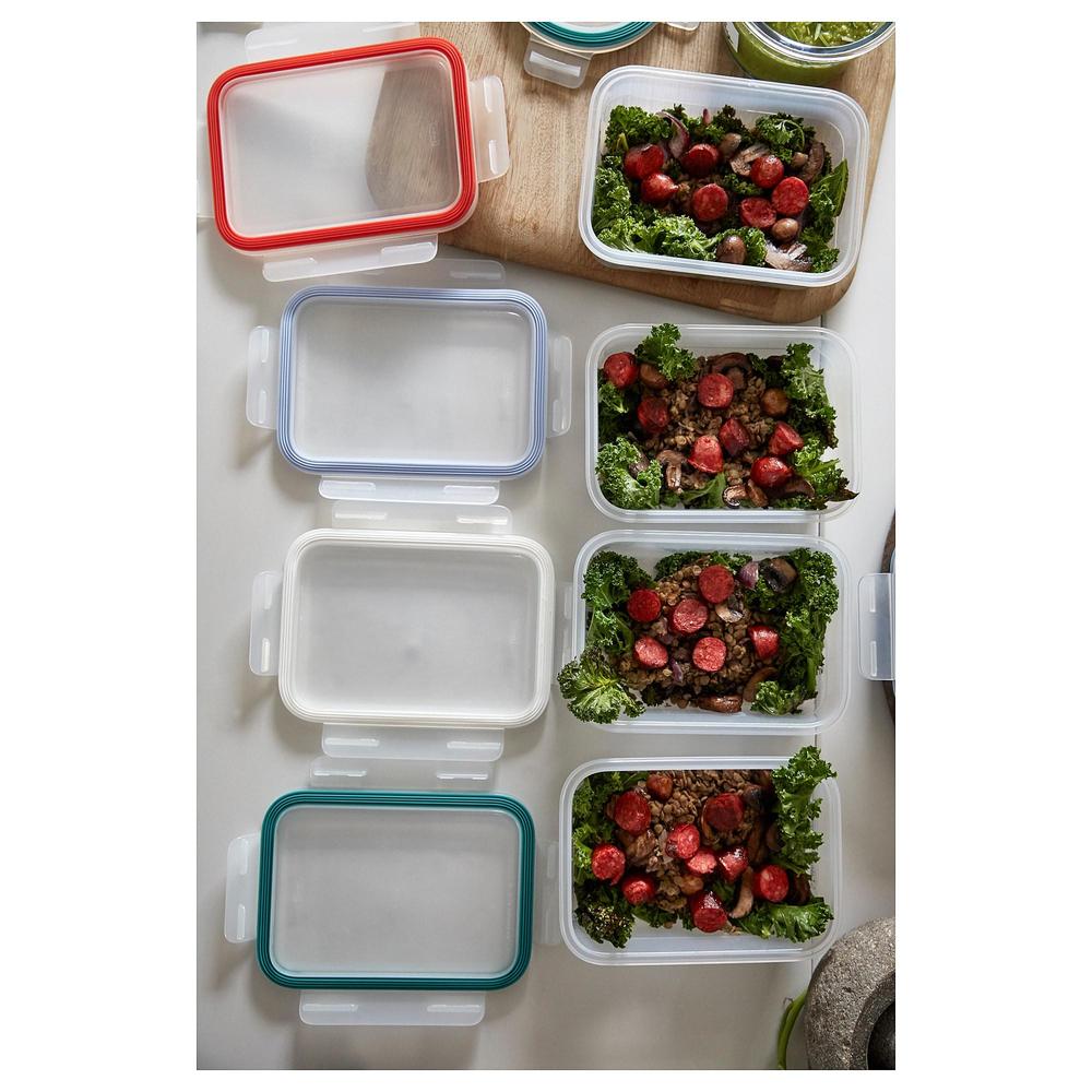 -Четыре разноцветные съемные уплотнительные прокладки сделают хранение продуктов в контейнерах более удобным. Выберите цвет для каждого члена семьи или вида продуктов, или даже дня недели.