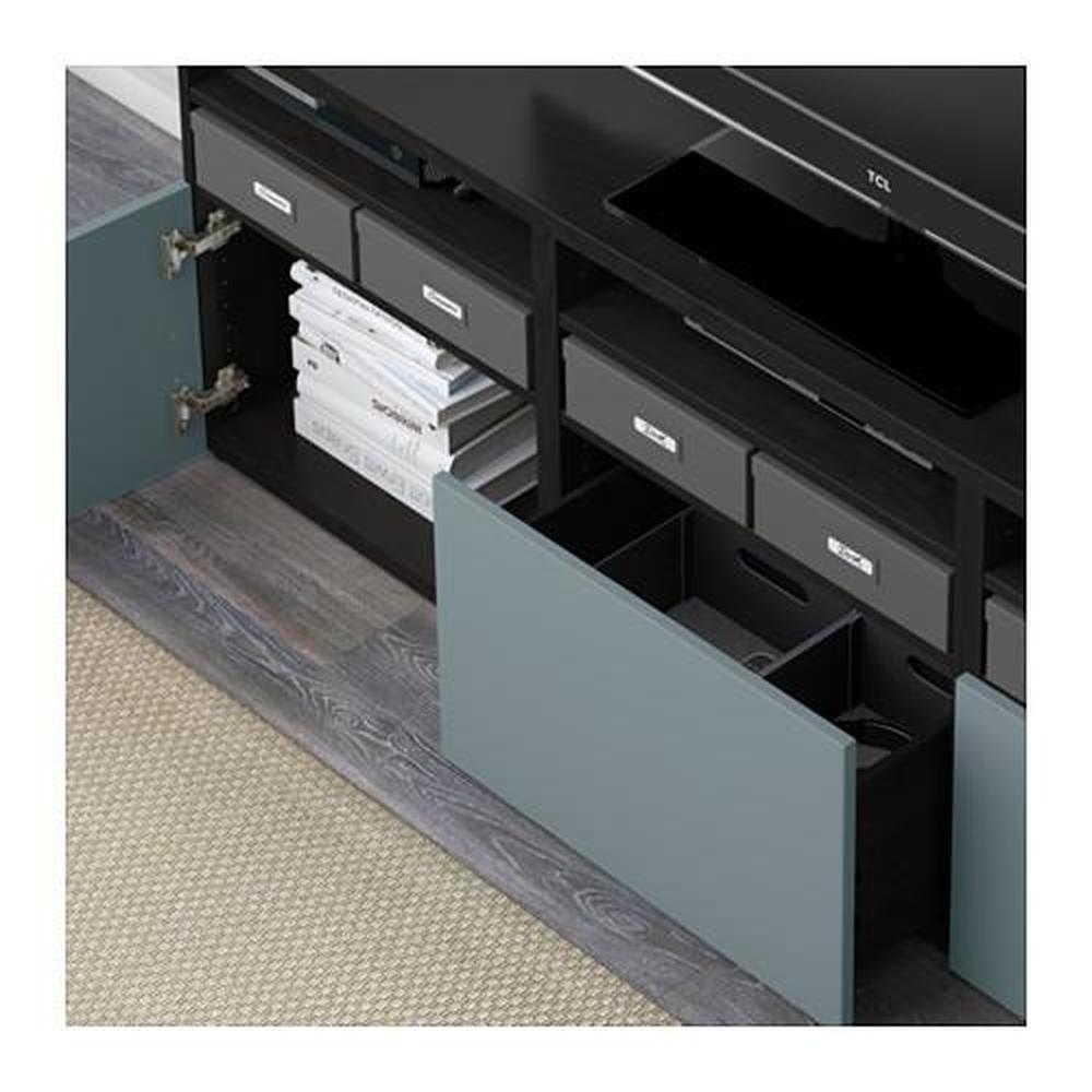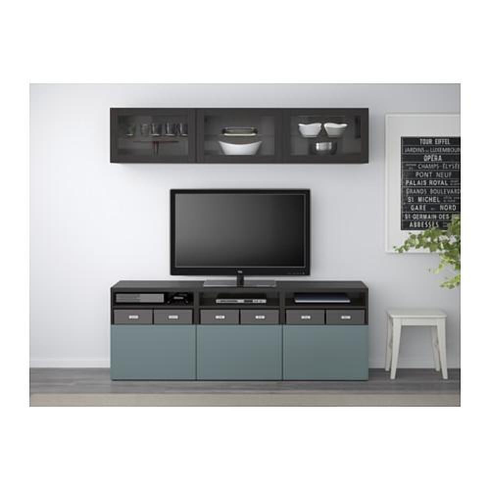 BESTÅ шкаф для ТВ, комбин/стеклян дверцы желтый