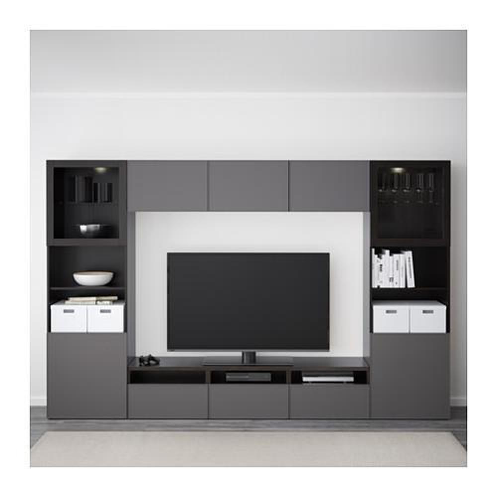 BESTÅ шкаф для ТВ, комбин/стеклян дверцы серый