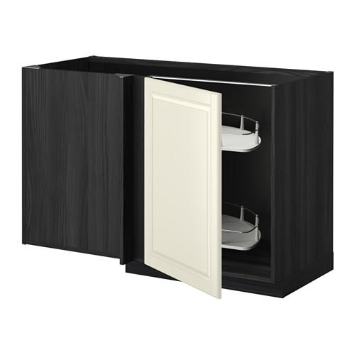 METOD угловой напол шкаф с выдвижн секц черный/Будбин белый с оттенком 128x68 см