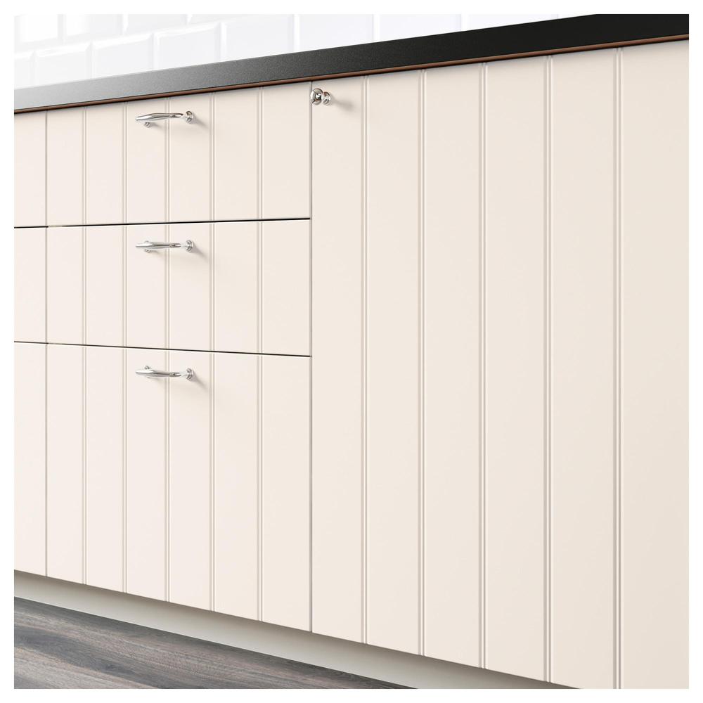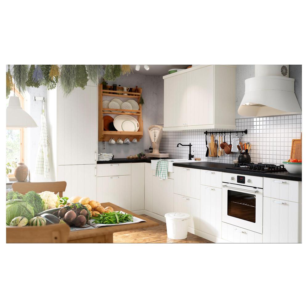 -Теплый оттенок дверцы ХИТАРП и орнамент из вертикальных бороздок создают ощущение ручной работы и подчеркивают атмосферу кухни в стиле кантри.