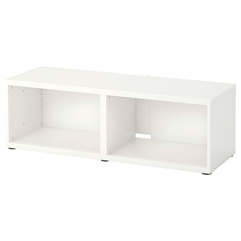 Можно дополнить ножками СУЛАРП. Для этой тумбы под ТВ нужно 2 ножки и 1 ножка-подпорка БЕСТО.
