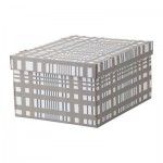 СМЕКА Коробка с крышкой - белый/клетчатый орнамент
