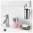 Можно повесить на стену с помощью держателя дозатора для жидкого мыла серии КАЛЬКГРУНД.