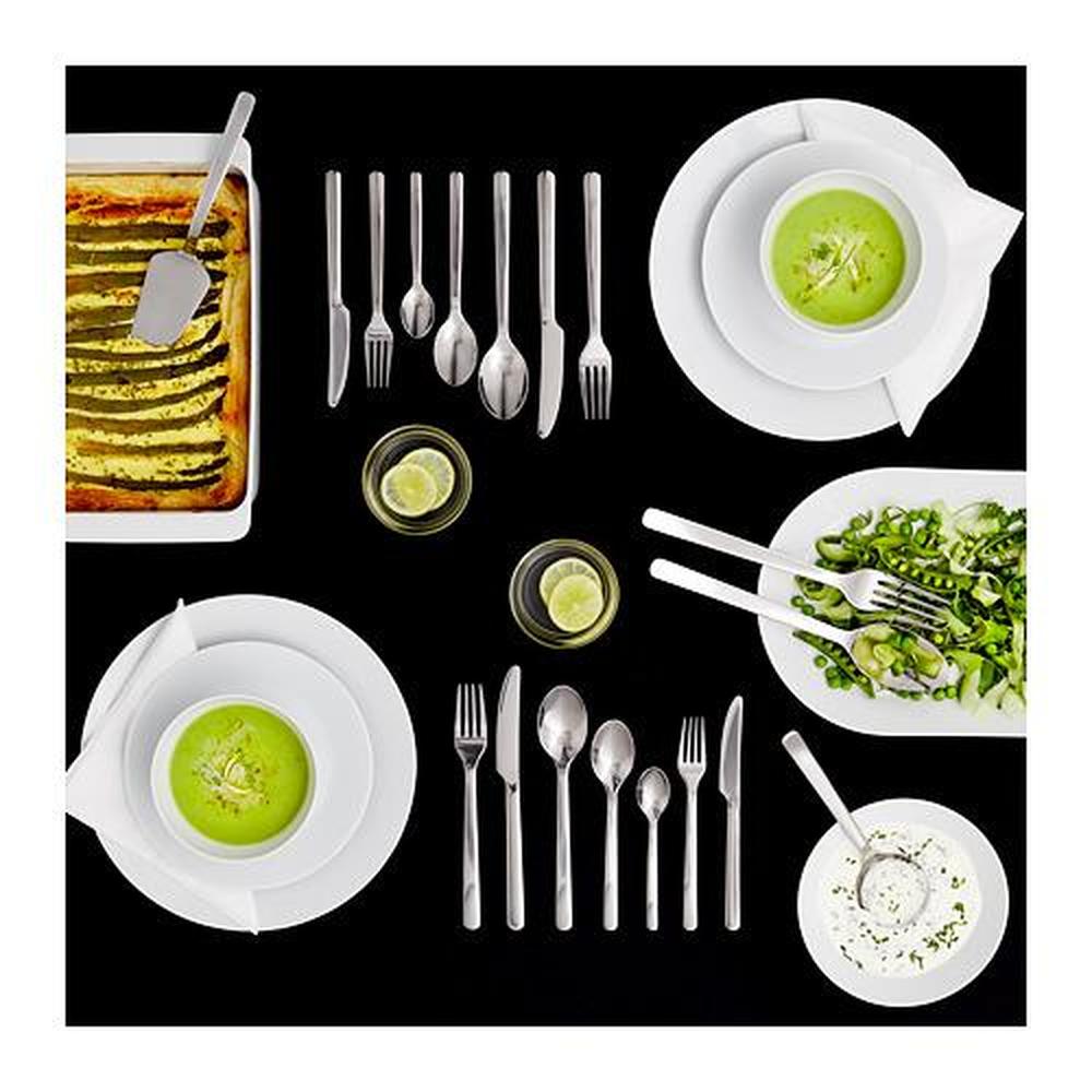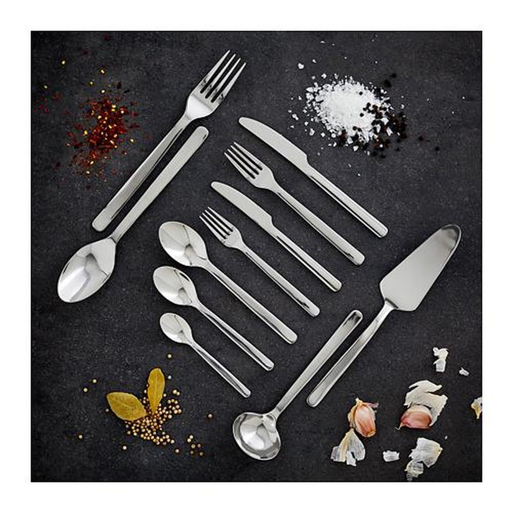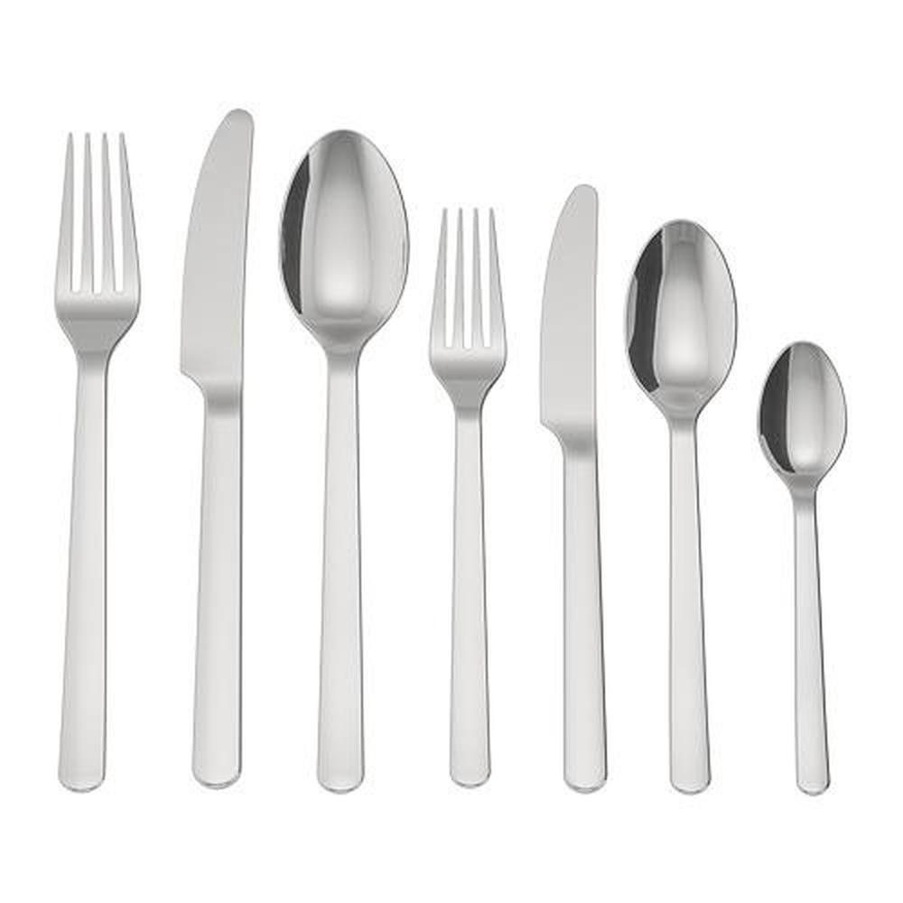 В набор входит: вилка, нож, ложка, чайная ложка, вилка для десерта/салата, нож для десерта/салата и ложка для десерта/салата; по 8 шт.