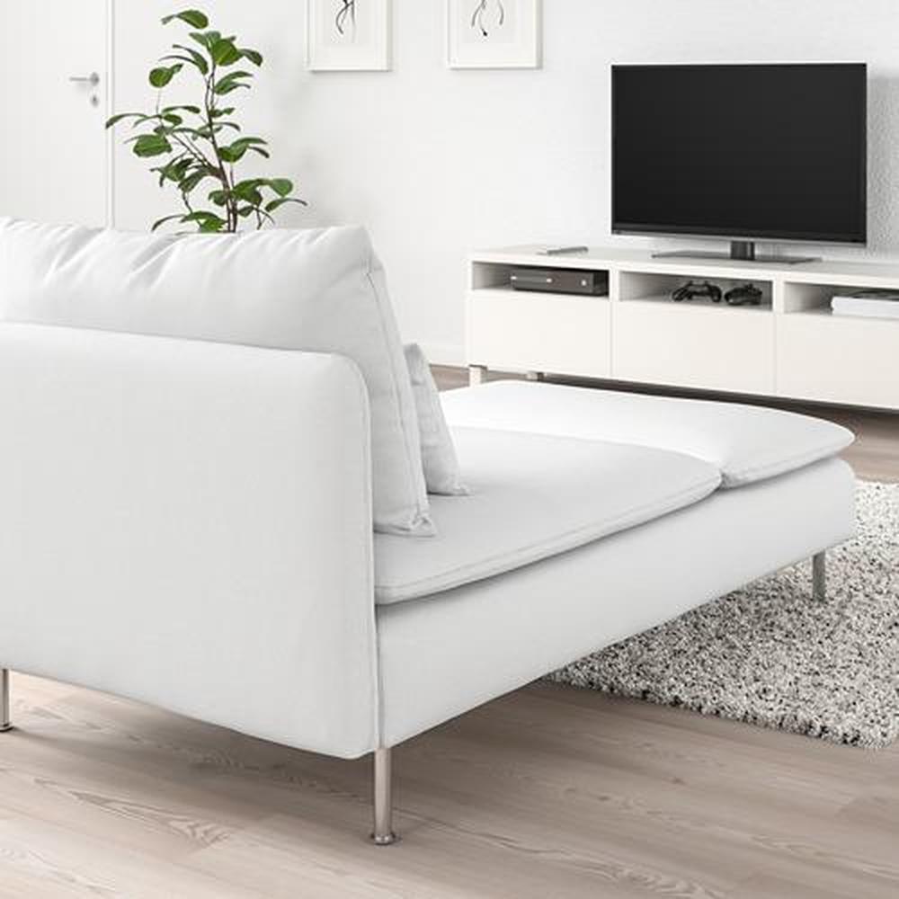 Мягкая мебель серии СОДЕРХЭМН с комфортным низким и глубоким сиденьем и незакрепленными подушками спинки для оптимальной поддержки.