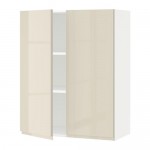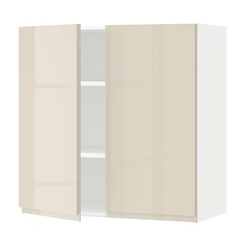 METOD навесной шкаф с полками/2дверцы белый/Воксторп глянцевый светло-бежевый 80x80 см