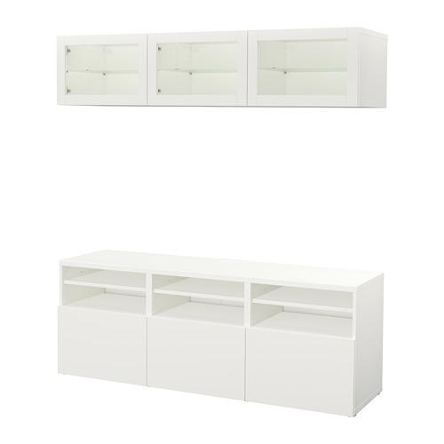 BESTÅ шкаф для ТВ, комбин/стеклян дверцы желтый