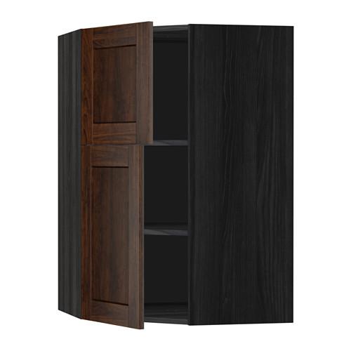МЕТОД Угловой навесной шкаф+полки/2дверцы - под дерево черный, Эдсерум под дерево коричневый