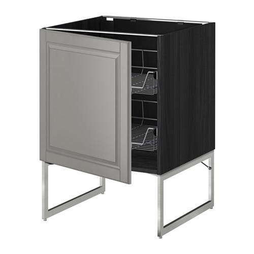 МЕТОД Напольный шкаф с проволочн ящиками - под дерево черный, Будбин серый, 60x60x60 см