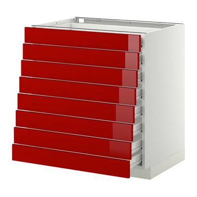 МЕТОД / ФОРВАРА Наполн шкаф 8 фронт/8 низк ящиков - 80x60 см, Рингульт глянцевый красный, белый