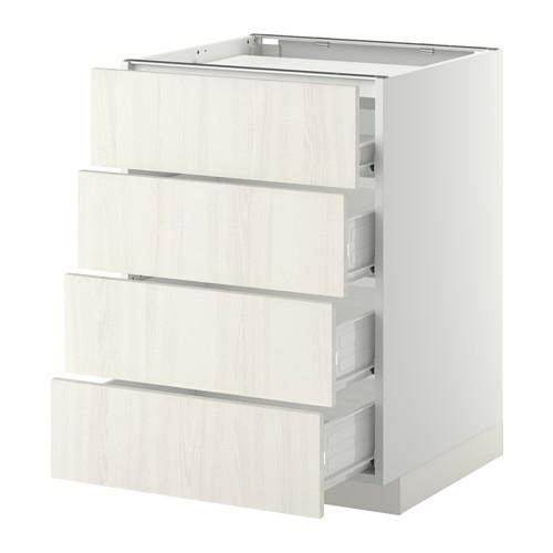 МЕТОД / ФОРВАРА Напольн шкаф/4фронт пнл/4ящика - 60x60 см, Росдаль белый ясень, белый