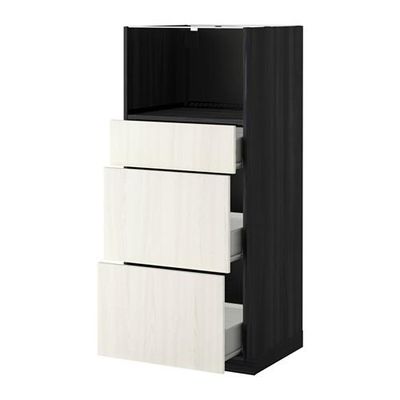 МЕТОД / ФОРВАРА Высокий шкаф д/СВЧ с 3 ящиками - Росдаль белый ясень, под дерево черный