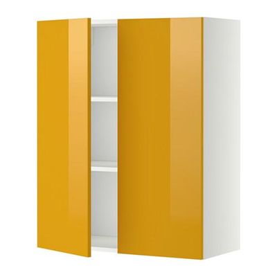 МЕТОД Навесной шкаф с полками/2дверцы - 80x100 см, Ерста глянцевый желтый, белый