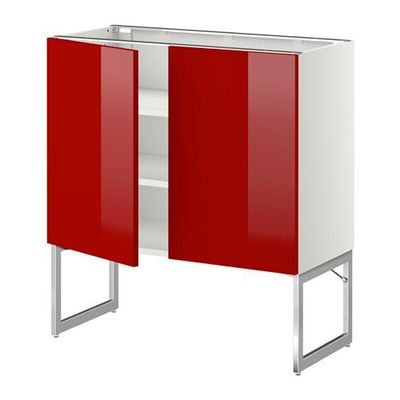 МЕТОД Напол шкаф с полками/2двери - 80x37x60 см, Рингульт глянцевый красный, белый