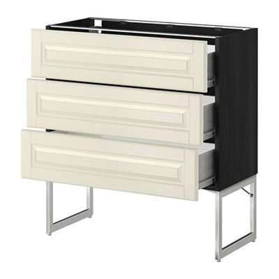 МЕТОД / ФОРВАРА Нплн шк 3 фрнт/3 средн ящика - 80x37x60 см, Будбин белый с оттенком, под дерево черный