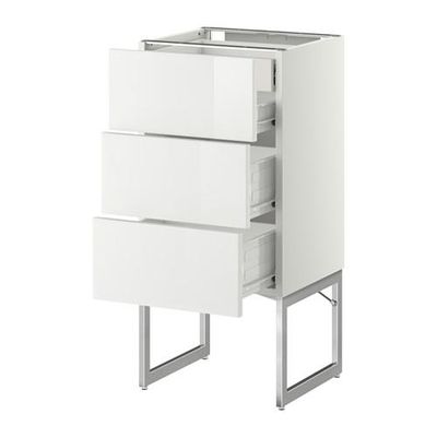 МЕТОД / ФОРВАРА Напольн шкаф 3фронт пнл/2низ/2ср ящ - 40x37x60 см, Рингульт глянцевый белый, белый