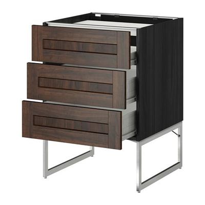 МЕТОД / ФОРВАРА Напольн шкаф/3фронт пнл/3ящика - 60x60x60 см, Эдсерум под дерево коричневый, под дерево черный
