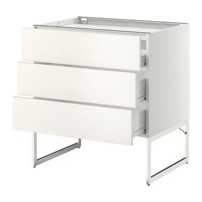 МЕТОД / ФОРВАРА Напольн шкаф/3фронт пнл/3ящика - 80x60x60 см, Веддинге белый, белый