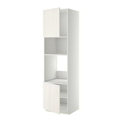 МЕТОД Выс шкаф д/духовки/СВЧ/2 дв/полки - 60x60x220 см, Росдаль белый ясень, белый