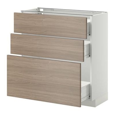 МЕТОД / ФОРВАРА Напольный шкаф с 3 ящиками - 80x37 см, Брокхульт под грецкий орех светло-серый, белый