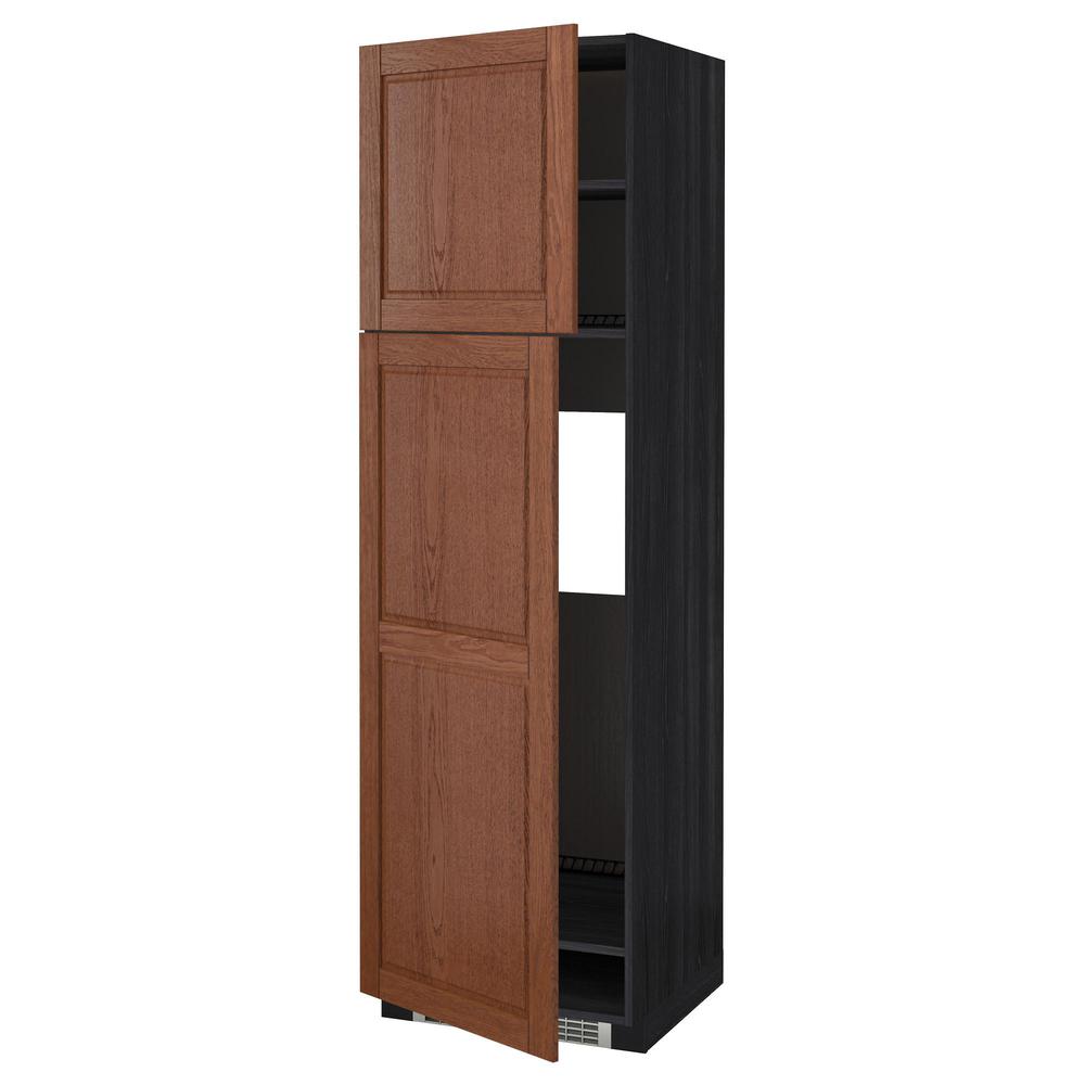 МЕТОД Высокий шкаф д/холодильника/2дверцы - под дерево черный, Филипстад коричневый, 60x60x200 см