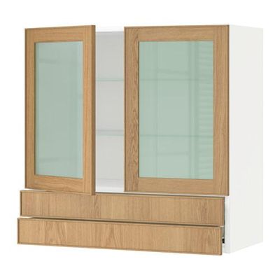 МЕТОД / ФОРВАРА Навесной шкаф/2 стек дв/2 ящика - 80x80 см, Экестад дуб, белый