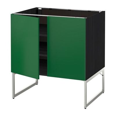 МЕТОД Напол шкаф с полками/2двери - 80x60x60 см, Флэди зеленый, под дерево черный