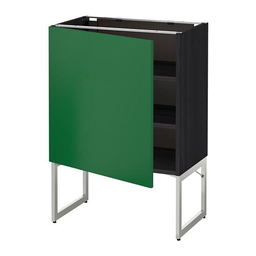 МЕТОД Напольный шкаф с полками - 60x37x60 см, Флэди зеленый, под дерево черный