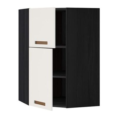 МЕТОД Угловой навесной шкаф+полки/2дверцы - Мэрста белый, под дерево черный